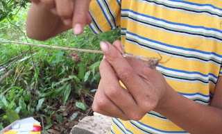 It was not the first time I witnessed paupas ka damang. When I was a kid in Iloilo years ago, one of our past times was paupas ka damang, or spiderfighting - a version of cockfighting where, instead of cocks, we used spiders as the centerpiece of the action. We caught wild spiders and let them fight on a foot-long stick. The winner was the spider that successfully subdued its opponent and subsequently wrapped the victim with its web to become its meal. I remember how we cheered when this happened. We usually did paupas ka damang after the harvest season when the rice fields were either covered with weeds and shrubs, or replanted with corn.